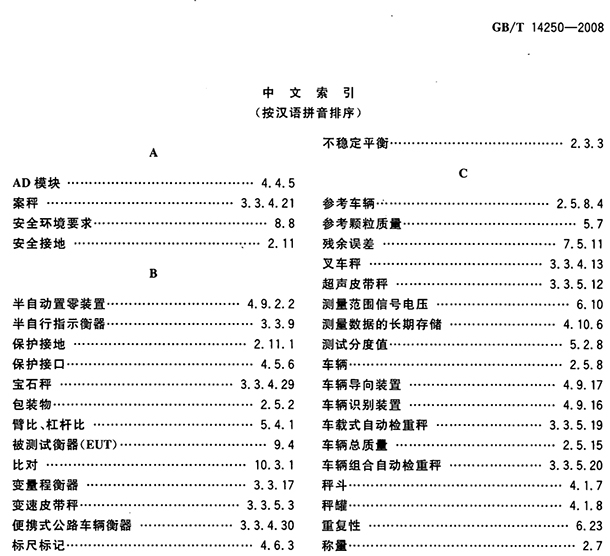 GB/T 14250- 2008 衡器術語 標準規范規定了衡器專業的術語及其定義,適用于衡器的標準編寫、書籍出版、文件編制、技術交流等技術方面。