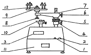 利用小量值力傳感器測量精度高、穩定性好的特點,作為測量量儀測力的基準。加上多功能的夾具,來適應裝夾多種量儀,以達到應用范圍廣的目的。再加上底座,調整裝置等,則組成一種較為理想的量儀測力計,其具體結構見圖。