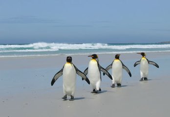 它們?cè)谘┑厣蠐u搖擺擺地排隊(duì)行進(jìn),長(zhǎng)達(dá)幾百公里的危險(xiǎn)長(zhǎng)征要走兩三個(gè)月。到達(dá)目的地,它們組成一對(duì)對(duì)“夫妻”,交歡產(chǎn)卵。生下的企鵝蛋先由“媽媽”孵化,冰雪覆蓋的原野上沒(méi)有任何食物,一段時(shí)間后,“媽媽”們將懷中的小寶貝交給“爸爸”,回到海洋去補(bǔ)充食物,以便回來(lái)哺育將要出生的小企鵝。